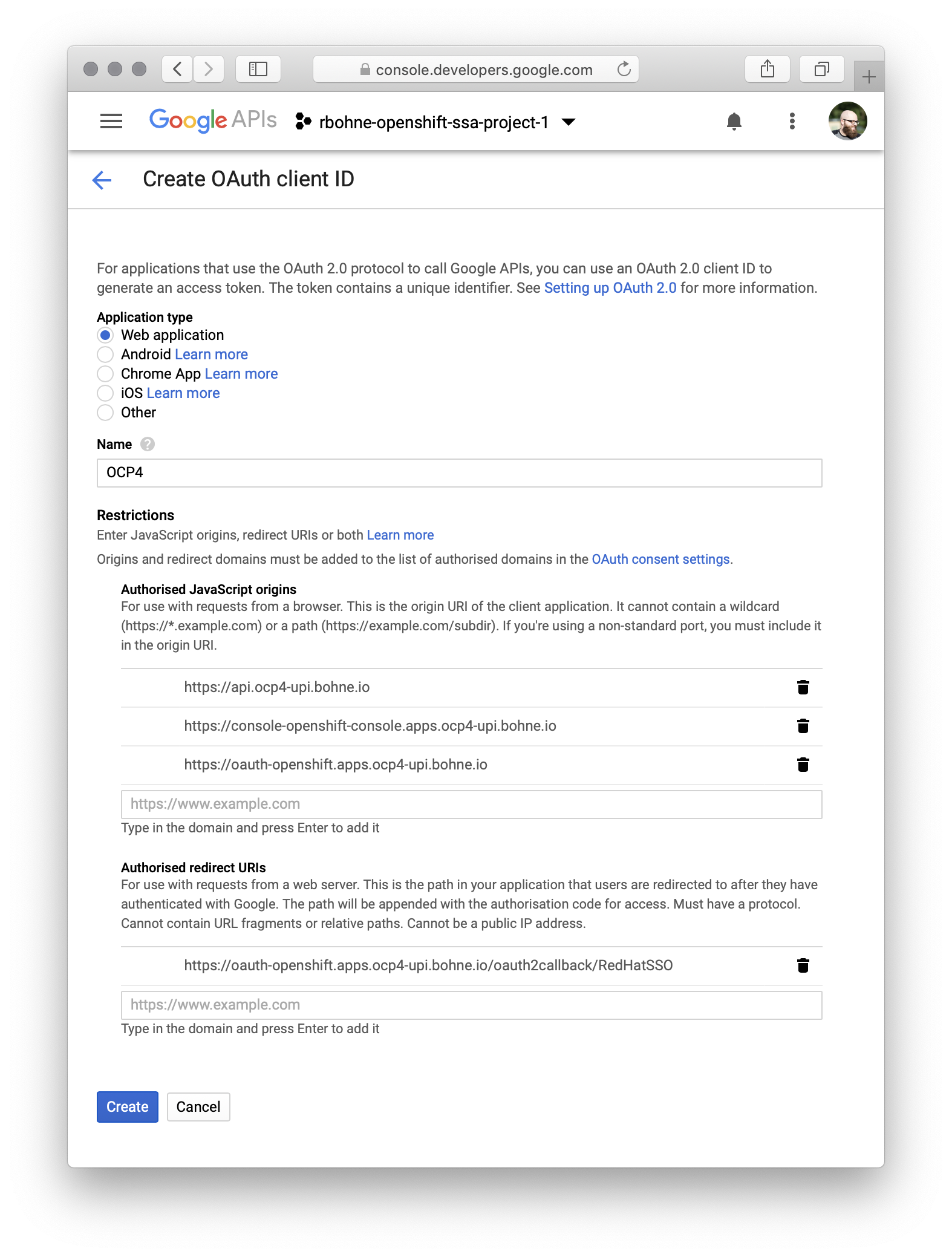 Setup OAuth 2.0 client at Google