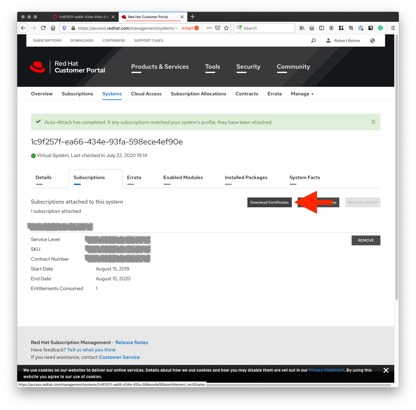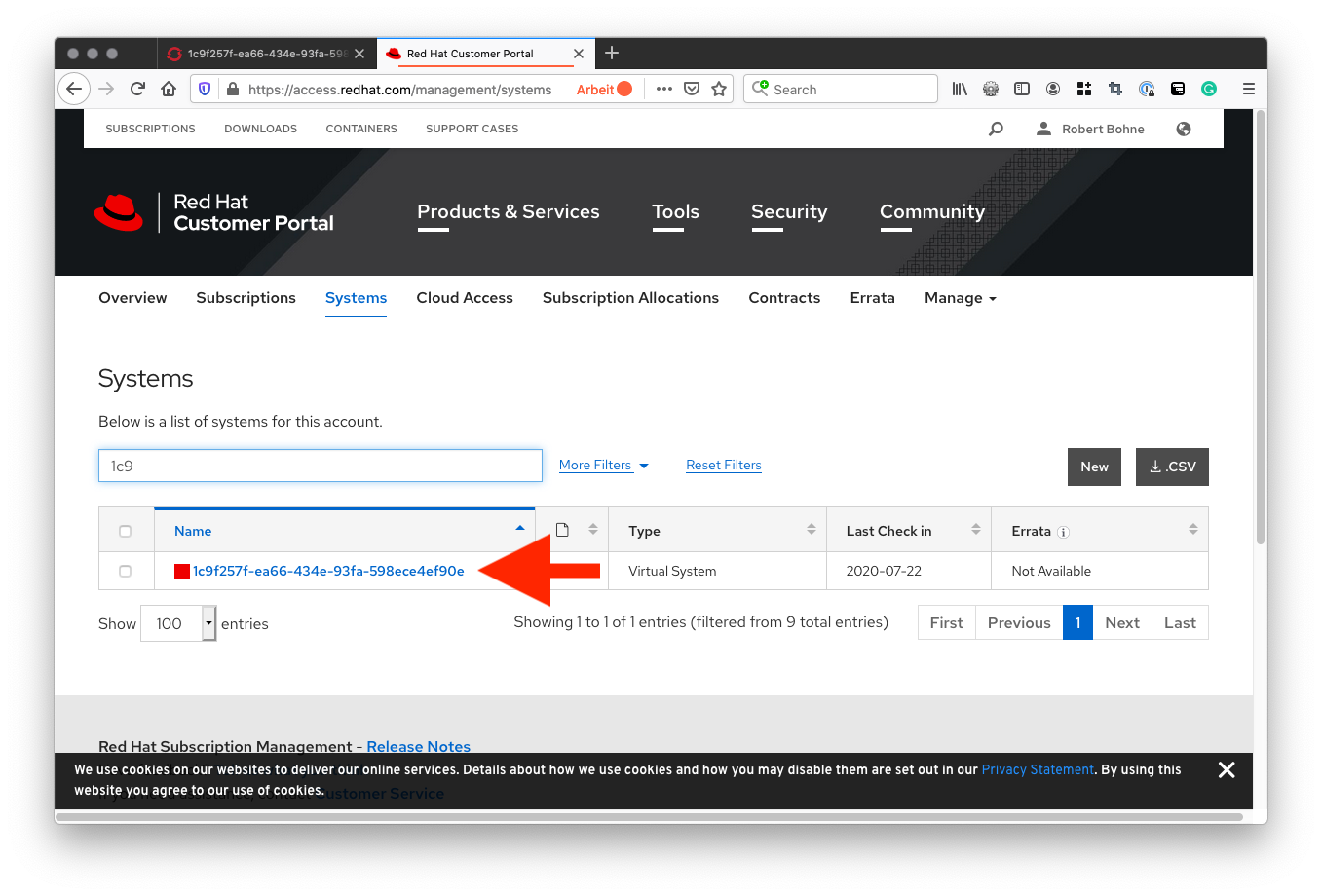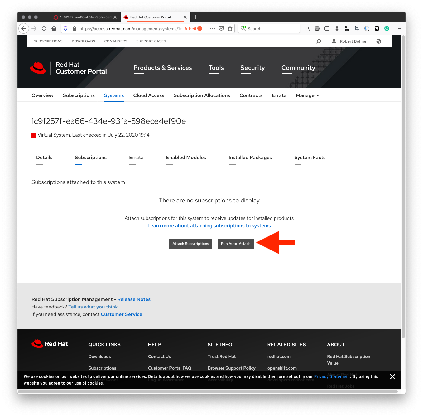 Subscription Manager is operating in container mode.